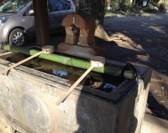 一見普通の手水舎な感じですが、とっても面白いのが、水が自動ででるところ。